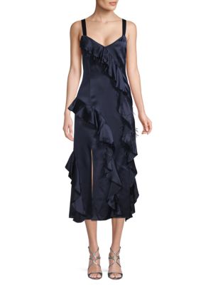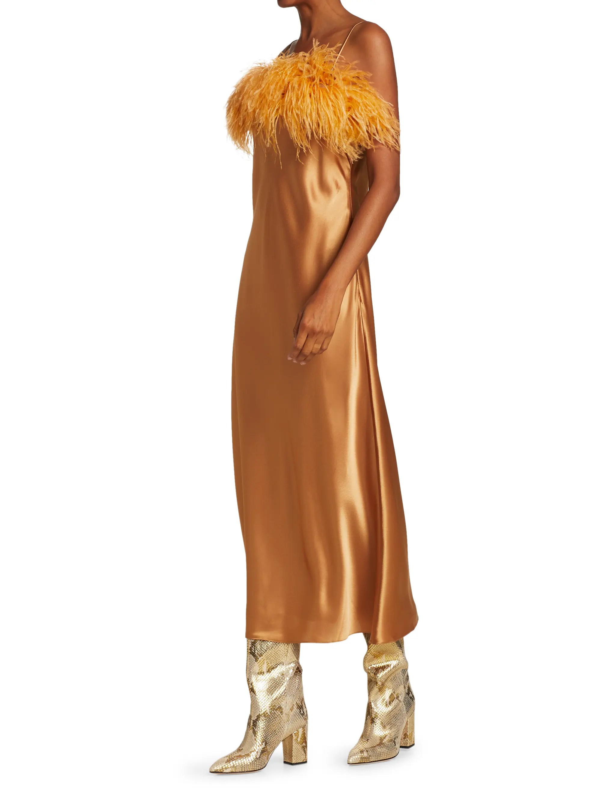 1804650 gigi ruffle and ostrich feather silk dress.